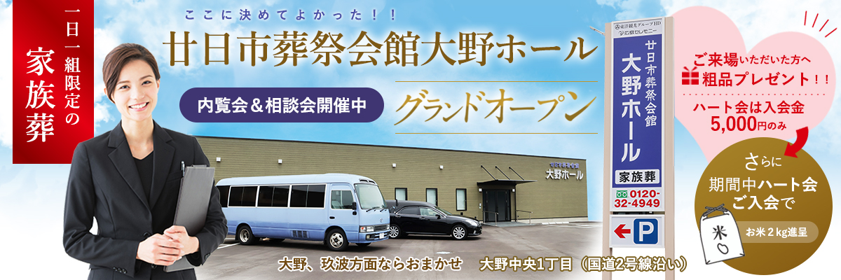 - 廿日市葬祭会館 大野ホール グランドオープン!!