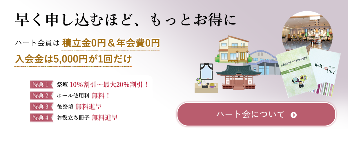 広島セレモニーでは、事前にご入会いただくことで受けられるお得な特典いっぱいの「ハート会」がございます。